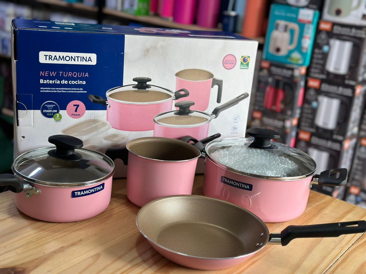 Set de 7 piezas Tramontina para cocina. Incluye ollas y sartenes de acero inoxidable duradero, ideales para cocinar con precisión y distribuir el calor de manera uniforme.
