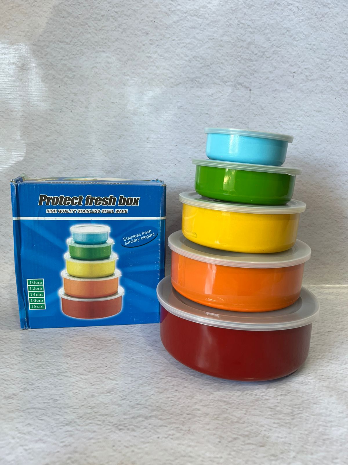 Set de 5 tuppers de acero inoxidable con tapa, tamaños 10 a 18 cm. Ideales para almacenar, transportar y conservar alimentos de forma segura y duradera. Perfectos para el hogar, trabajo o excursiones.