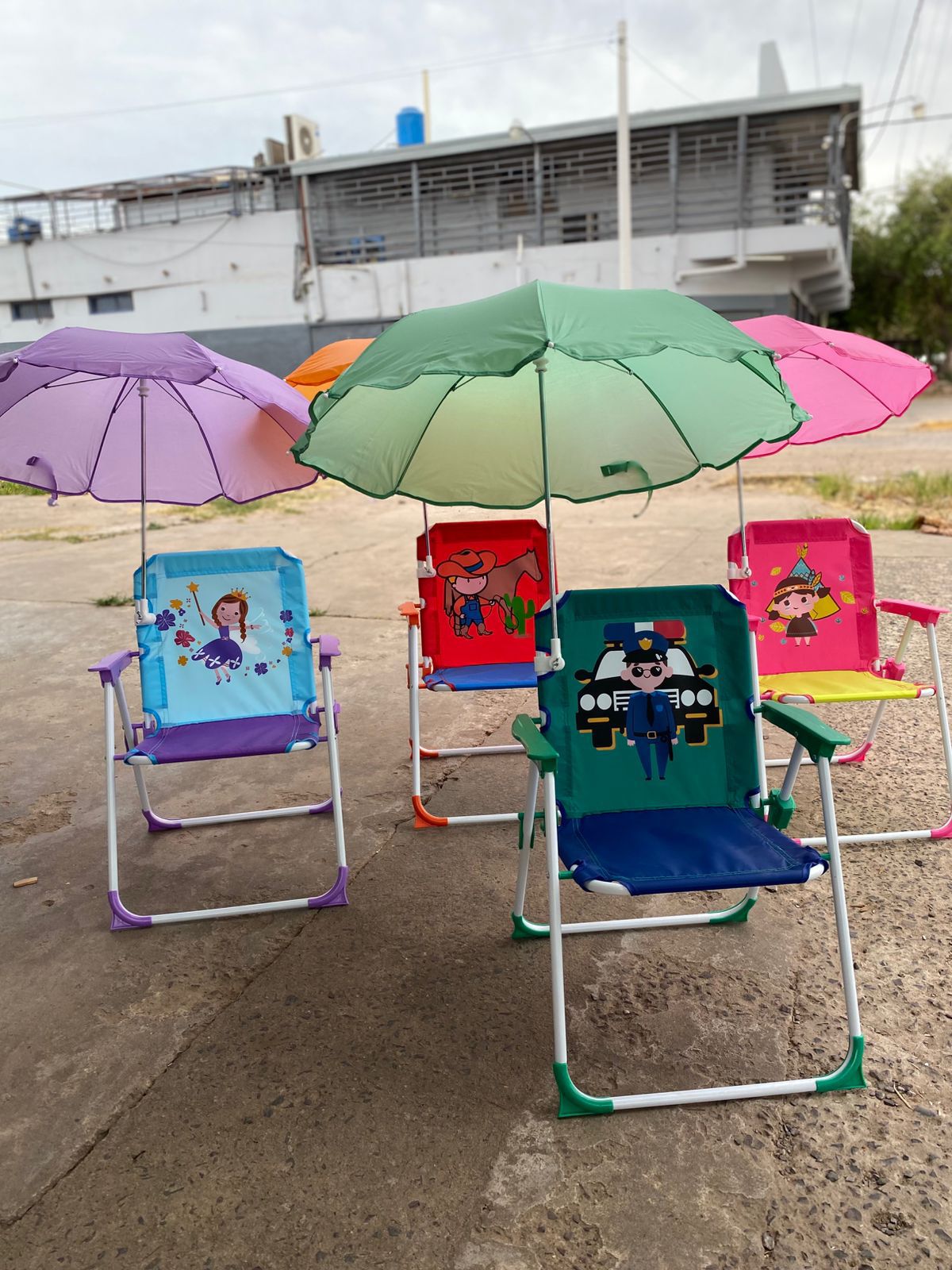 Silleta infantil plegable con sombrilla incorporada. Fácil de armar y con traba de seguridad para mayor estabilidad. Ideal para paseos y comidas al aire libre con tu niño.