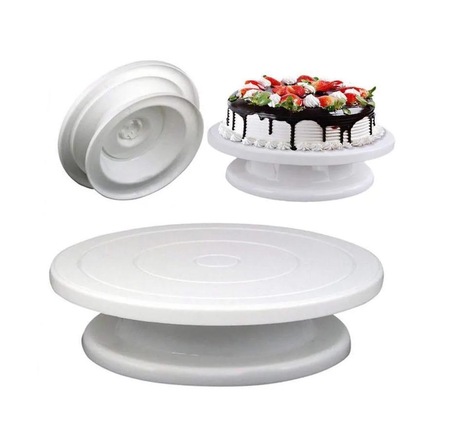 Soporte giratorio profesional para decorar tortas con facilidad. Base estable y rotación suave para un acabado perfecto. Ideal para repostería creativa y aficionados.