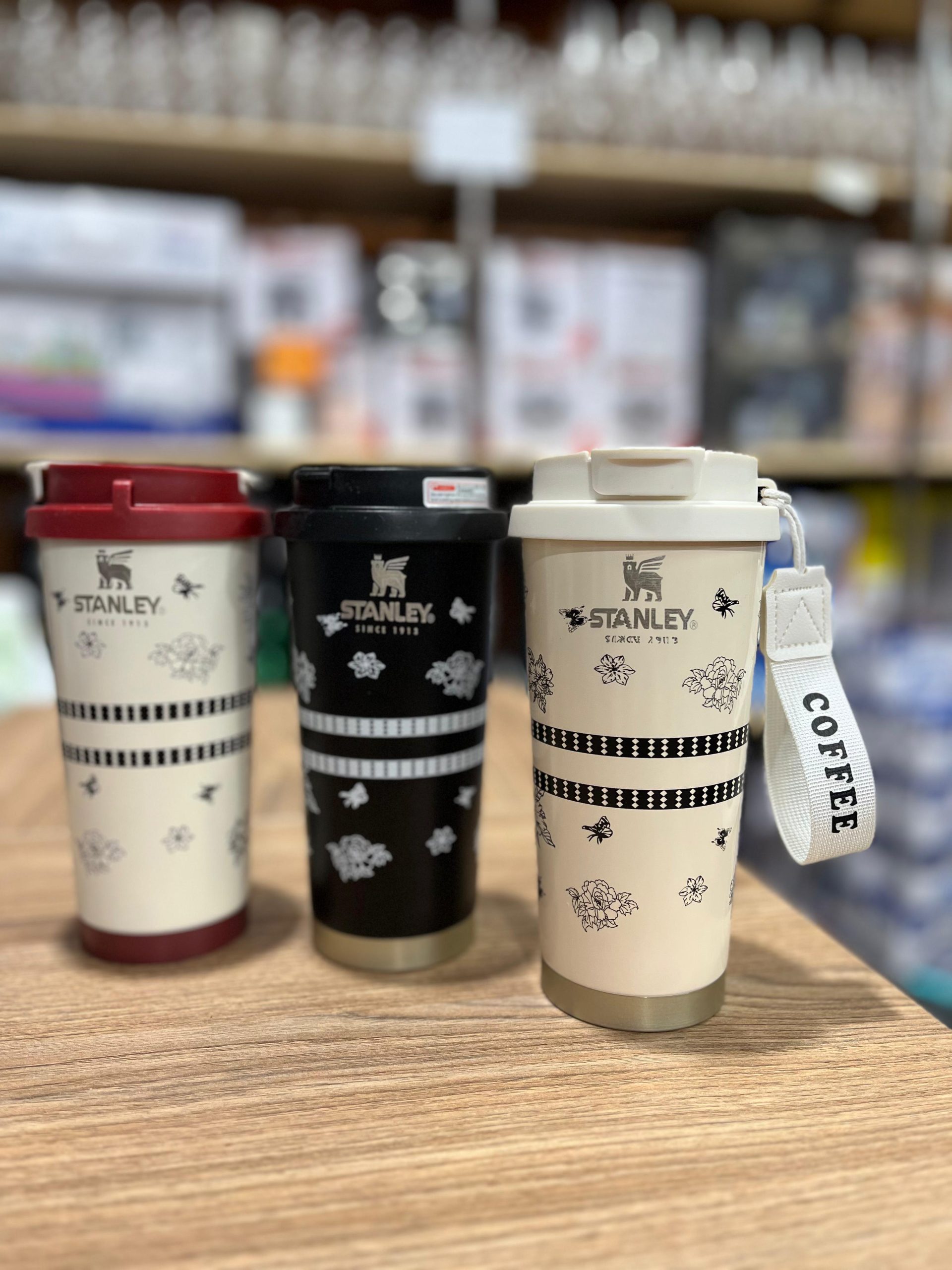 Vaso térmico de 500ml con doble pico y correa portátil. Mantiene bebidas frías o calientes por horas. Ideal para café, té o agua. Disponible en varios colores.