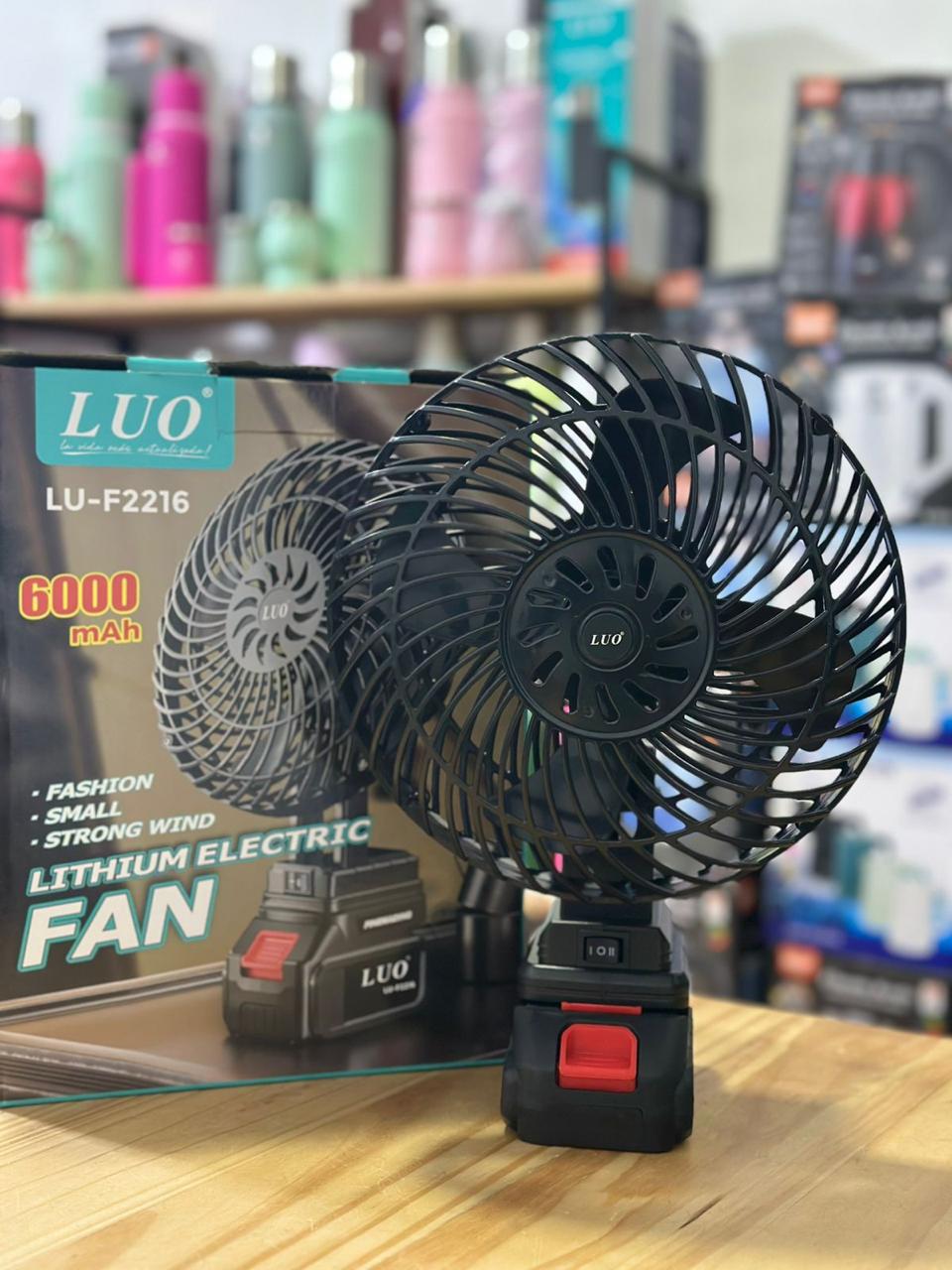 Ventilador portátil recargable Luo. Ideal para viajes, oficina o casa. Batería de larga duración, diseño compacto y silencioso. Enfría al instante sin cables.